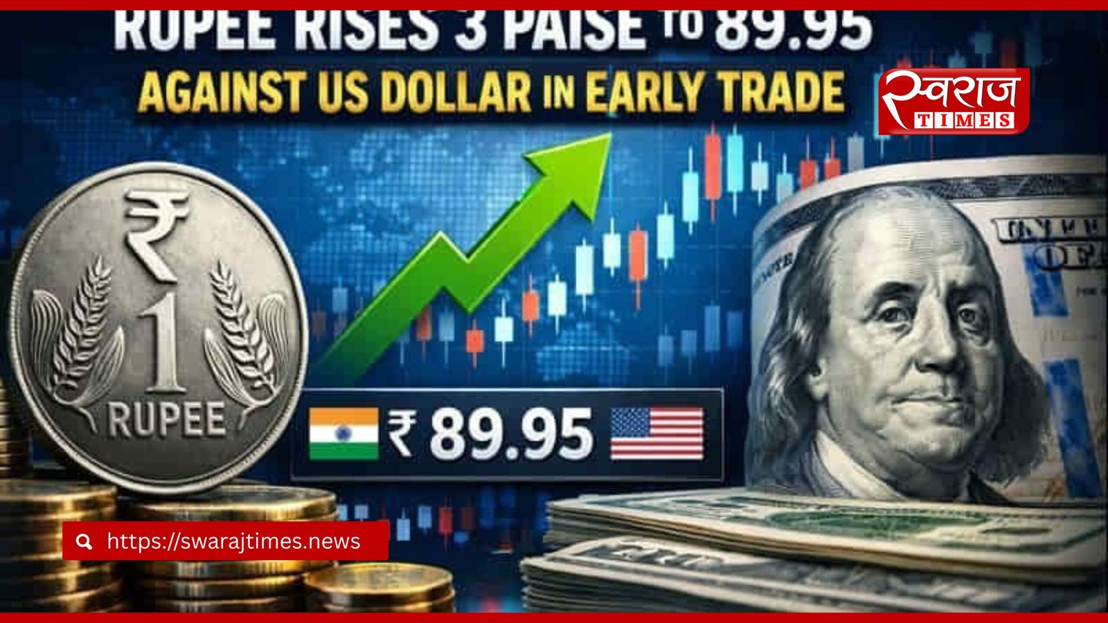 Swaraj Times Desk: लंबी गिरावट और रिकॉर्ड निचले स्तरों को छूने के बाद भारतीय रुपये ने आखिरकार थोड़ी राहत ली है। मंगलवार के शुरुआती कारोबार में रुपये में हल्की मजबूती देखने को मिली और यह 3 पैसे चढ़कर 89.95 प्रति डॉलर पर पहुंच गया। पिछले कुछ दिनों से डॉलर के मजबूत रुख और विदेशी निवेश की भारी निकासी से दबाव झेल रही घरेलू मुद्रा को इस बार सहारा मिला कमजोर होते डॉलर इंडेक्स और बेहतर औद्योगिक उत्पादन के आंकड़ों से।